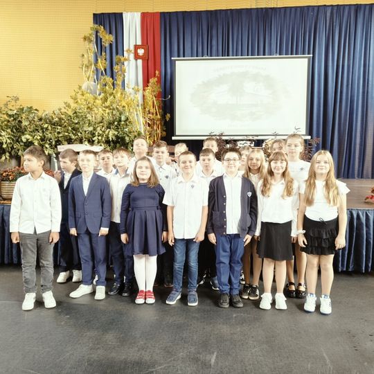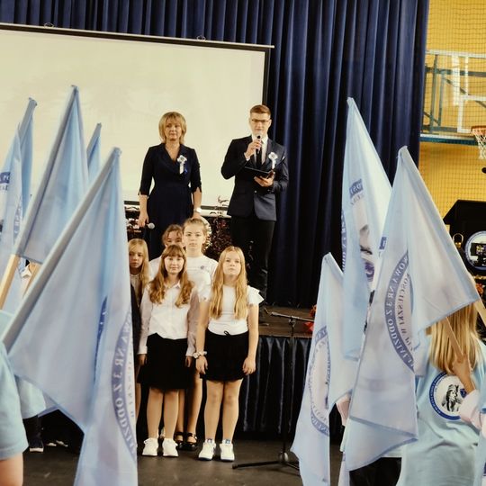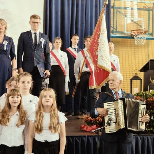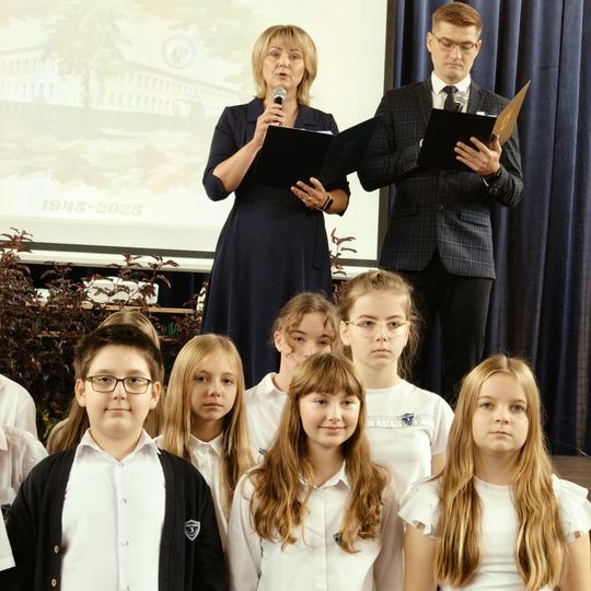 Szanowni państwo, drodzy goście, nauczyciele, uczniowie, absolwenci. W tym wyjątkowym dniu, gdy świętujemy 80-lecia naszej szkoły, powracamy myślami do wydarzeń i ludzi, którzy tworzyli jej historię i budowali jej tożsamość. Jednym z takich ponadczasowych symboli jest hymn szkoły, utwór, który wyraża dumę i wspólnotę. Po raz pierwszy wybrzmiał 28 listopada 1977 roku, autorem słów jest prawdopodobnie pani Maria Rutkiewicz, a muzykę skomponował pan Romuald Jankowski.