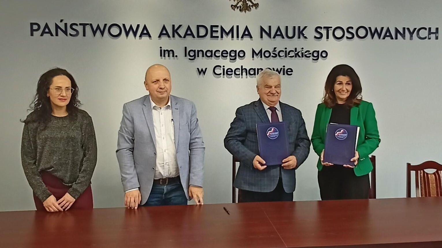 Dokument podpisali: dr inż. Grzegorz Koc – Rektor Uczelni oraz Ewa Leszczyńska – Dyrektor ZSCKR w Golądkowie. W spotkaniu uczestniczyli również przedstawiciele Wydziału Inżynierii i Ekonomii z dziekanem dr. inż. Robertem Rudzińskim na czele.