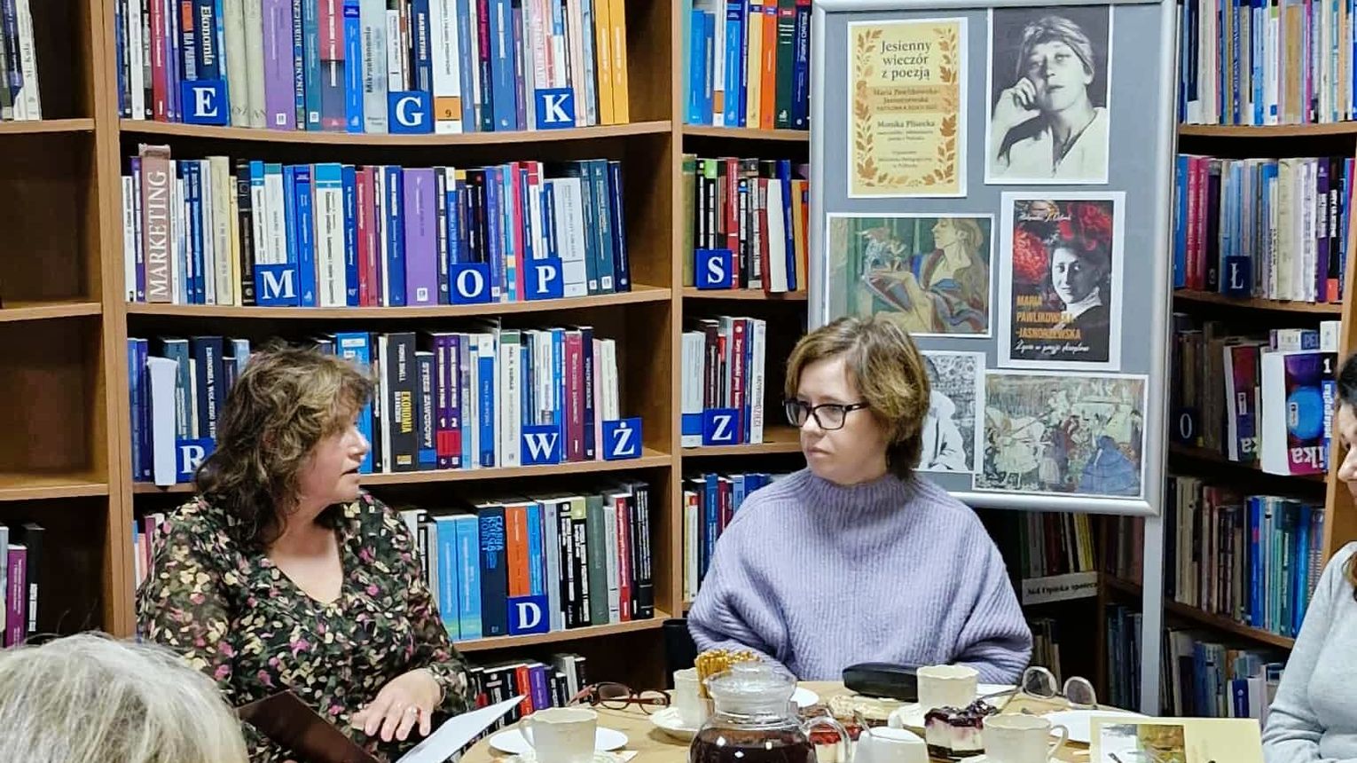 Podczas spotkania Pani Monika Plisecka czytała swoje wiersze wspólnie z Dyrektor Ewą Leszczyńską, koleżanką z pracy i recenzentką jej poezji. Pani Dyrektor opowiedziała o twórczości poetki w osobistym ujęciu, podkreślając jej szczerość, dojrzałość emocjonalną i zdolność przekuwania zwyczajnych doświadczeń w poetyckie obrazy.