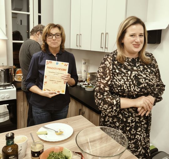 Ciekawe te warsztaty prowadzili z p. Dorotą panowie dwaj (Adam Biegała i Jan Przeor), widać, obyci w kuchni, przy tym weseli i zarażający humorem zebranych – panie i panów. – Mam nadzieję, że będzie ciekawie, że będzie smacznie i każdy z państwa wyjdzie z jakąś innowacją do domu, ja też na to liczę – powiedziała kierowniczka Wydziału Promocji, Kultury i Sportu Paulina Dąbkowska.