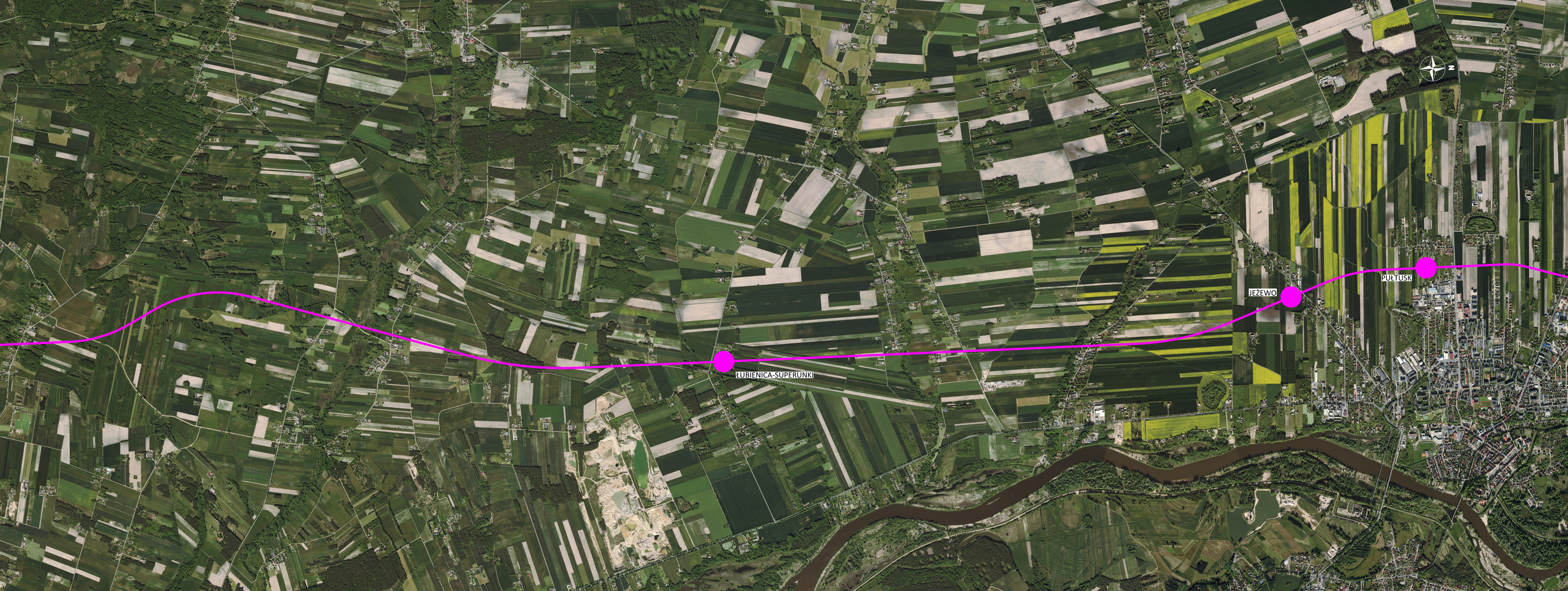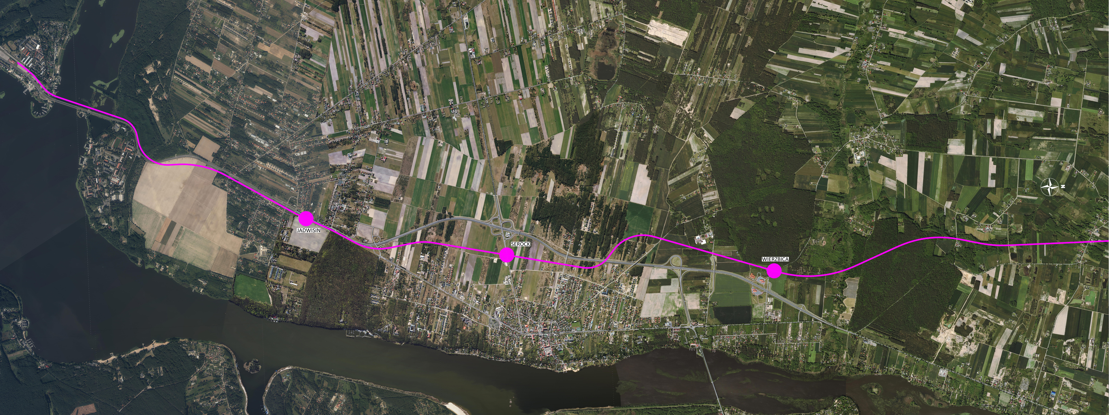 Na załączonych grafikach prezentujemy planowany przebieg wybranego wariantu - całość linii kolejowej przebiegającej przez nasz powiat.