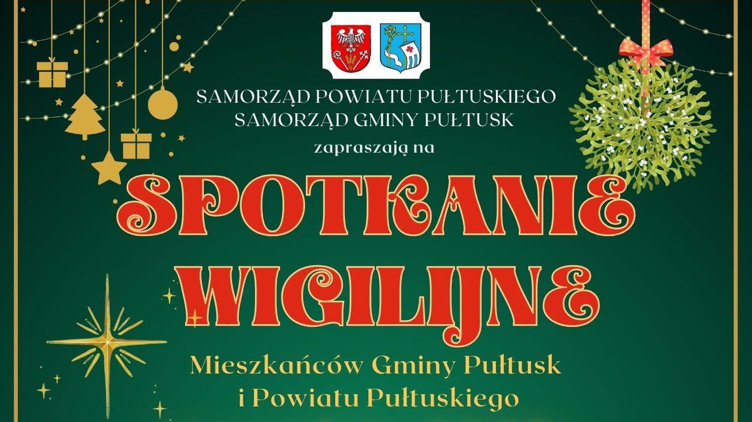 Samorząd Powiatu Pułtuskiego oraz Samorząd Gminy Pułtusk zapraszają na Spotkanie Wigilijne Mieszkańców Pułtuska i Powiatu Pułtuskiego, które odbędzie się w niedzielę, 14 grudnia 2025 r. w godz. 09.00 – 14.00 na rynku w Pułtusku.