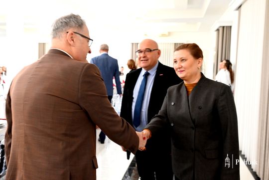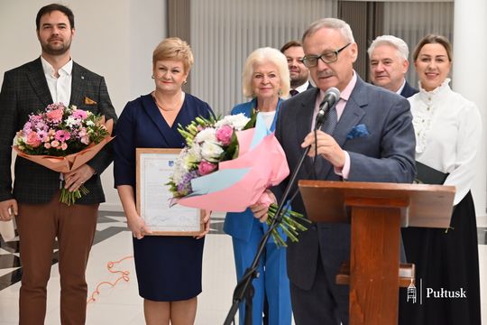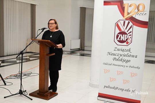 Burmistrz przekazała na ręce Prezes Oddziału Powiatowego ZNP w Pułtusku Marii Korbal list gratulacyjny, w którym podkreślono, że od ponad stulecia Związek angażuje się w działania na rzecz jakości edukacji, obrony praw pracowniczych i budowania prestiżu zawodu nauczyciela. W imieniu Samorządu Powiatu Pułtuskiego i Samorządów Gminnych życzenia dalszych lat owocnej działalności złożył Przewodniczący Rady Powiatu w Pułtusku Tadeusz Nalewajk. Symbolem uznania i podziękowania Samorządu Gminy Pułtusk za pracę Związku był bukiet kwiatów, który Prezes Marii Korbal wręczył Przewodniczący Rady Miejskiej Łukasz Skarżyński .
