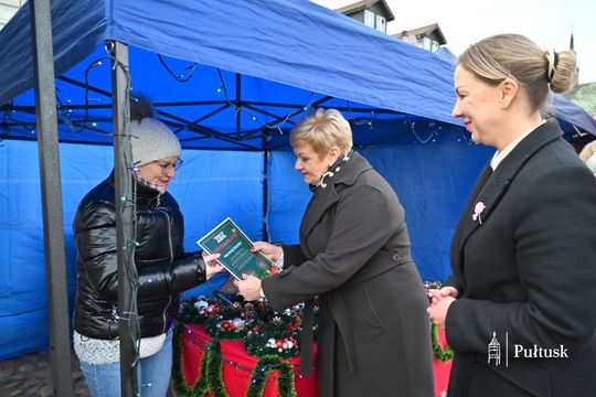 Na stoisku Gminy Pułtusk mieszkańcy mogli otrzymać specjalne wydanie gazetki podsumowującej działania Gminy Pułtusk w mijającym roku, sianko pod wigilijny obrus, pierniczki „I love Pułtusk”, a także rozgrzewającą gorącą czekoladę i zimową herbatę.