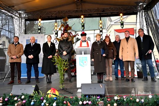 Oficjalną część wydarzenia rozpoczęły wystąpienia przedstawicieli władz samorządowych: Beaty Jóźwiak Burmistrz Miasta Pułtusk oraz Emilii Gąseckiej Wicestarosty Pułtuskiego, które skierowały do mieszkańców serdeczne życzenia świąteczne, podziękowały za tak liczną obecność oraz zachęcały do wspólnego przeżywania tego wyjątkowego dnia. Na scenie obecni byli również Łukasz Skarżyński Przewodniczący Rady Miejskiej w Pułtusku wraz z radnymi oraz Robert Czyżewski Członek Zarządu Powiatu w Pułtusku.