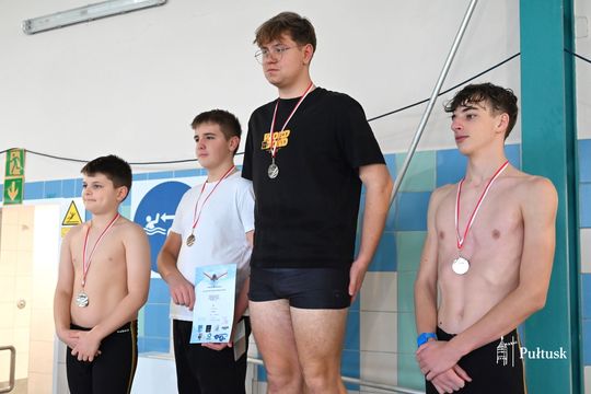 Zastępca Burmistrza Miasta Pułtusk Mateusz Miłoszewski – w imieniu Burmistrz Miasta Pułtusk Beaty Jóźwiak oraz trenerzy klubów pływackich wręczyli laureatom dyplomy i dokonali dekoracji medalami.