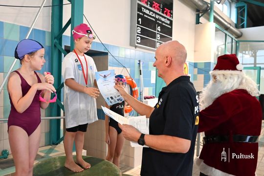 W sobotę, 13 grudnia 2025 r. na pływalni miejskiej w Pułtusku ponad 70 dzieci wzięło udział w kolejnej edycji Mikołajkowych Zawodów Pływackich. Zawody pod patronatem Burmistrza Miasta Pułtusk zostały zorganizowane przez Miejski Ośrodek Sportu i Rekreacji w Pułtusku, UKS Posejdon, Szkołę Pływania Rekinek oraz Szkołę Pływania Delfin.