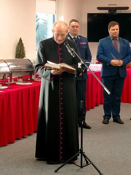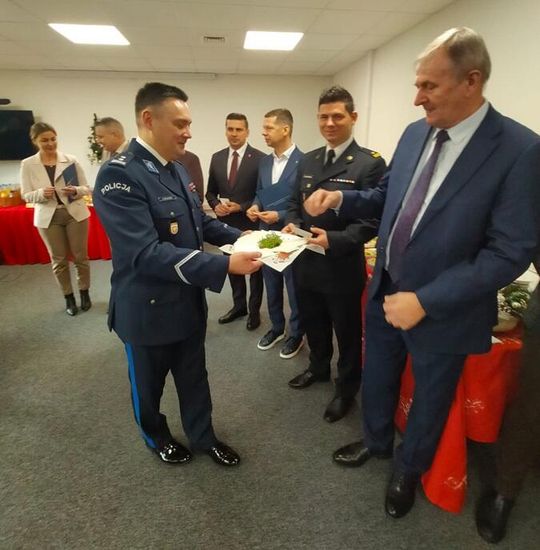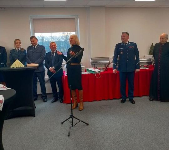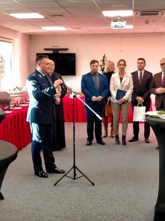 Po zakończeniu oficjalnej części apelu wszyscy goście udali się do sali konferencyjnej, gdzie odbyło się świąteczne spotkanie opłatkowe. Policjanci i pracownicy komendy wspólnie z zaproszonymi gośćmi składali sobie życzenia świąteczne i noworoczne, dziękowali za dotychczasową współpracę oraz dzielili się opłatkiem. Spotkanie upłynęło w ciepłej, rodzinnej atmosferze, którą dopełnił wspólny śpiew kolęd.