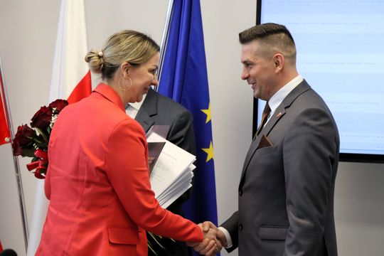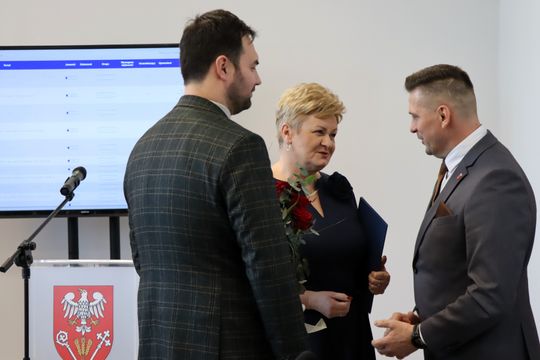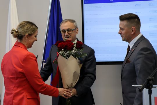 Podziękowania przedstawiciele nowo wybranych władz złożyli również radnemu Zbigniewowi Księżykowi, który pełnił funkcję członka Zarządu Powiatu VI oraz do dnia 26 lutego 2026 r. VII kadencji.