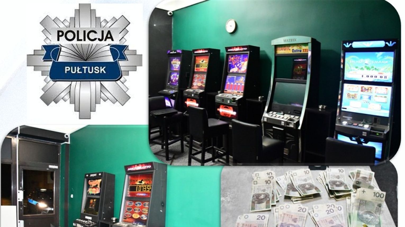 To natomiast nie koniec, kolejnego dnia (27.02.) pułtuska policja otrzymała zgłoszenie o uszkodzeniu witryny, jak się okazało, w tym samym lokalu, który dzień wcześniej był w zainteresowaniu funkcjonariuszy, a w pomieszczeniu - ponownie widok działających automatów. W toku wykonywanych czynności zabezpieczonych zostało kolejnych 7 urządzeń, na których zainstalowane były gry o charakterze losowym oraz gotówka w kwocie przekraczającej 1100 zł.