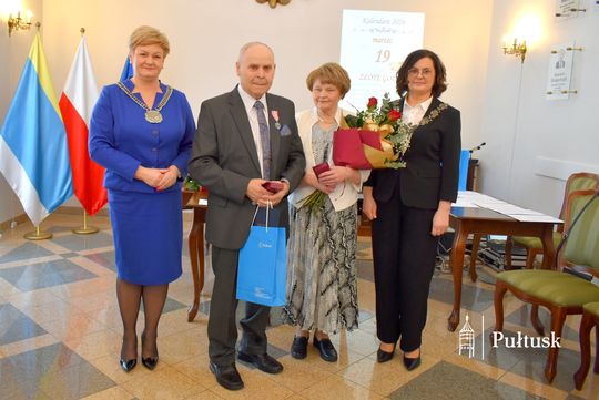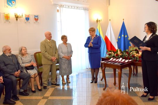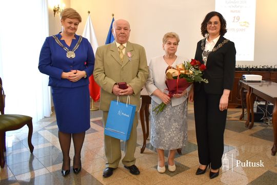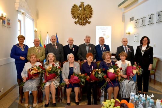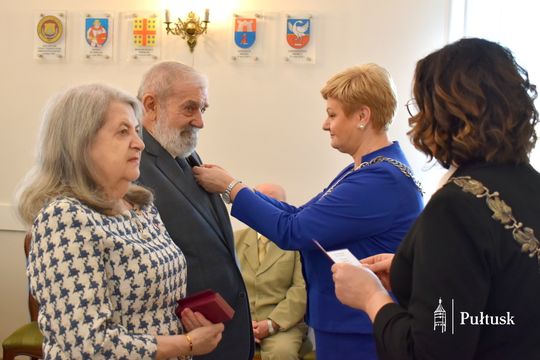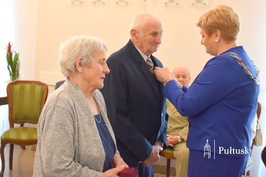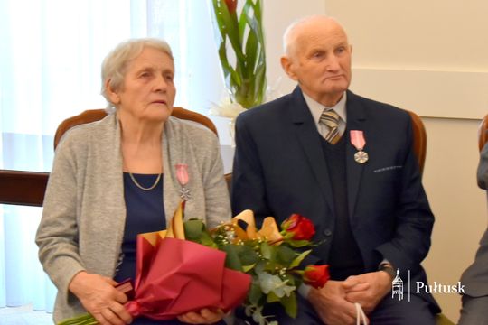 Z tej wyjątkowej okazji Dostojni Jubilaci zostali odznaczeni medalami „Za długoletnie pożycie małżeńskie”, przyznanymi przez Prezydenta Rzeczypospolitej Polskiej. Uroczystego aktu dekoracji dokonała Burmistrz Miasta Pułtusk Beata Jóźwiak. W swoim wystąpieniu podkreśliła znaczenie trwałości małżeństwa, opartego na wzajemnym szacunku, zaufaniu oraz codziennym wsparciu. Zaznaczyła również, że tak piękne jubileusze stanowią nie tylko powód do dumy dla samych Jubilatów, ale są także cennym przykładem dla młodszych pokoleń.