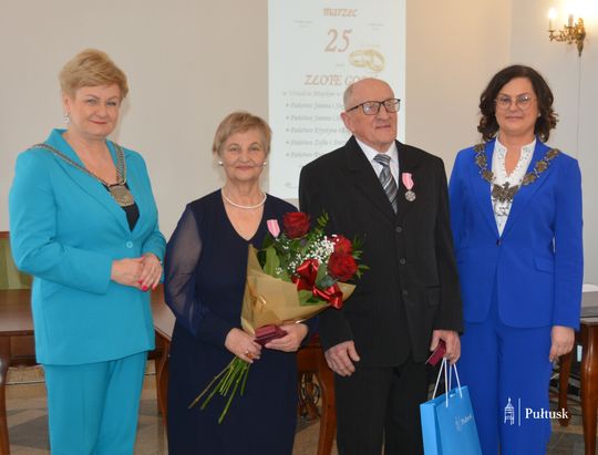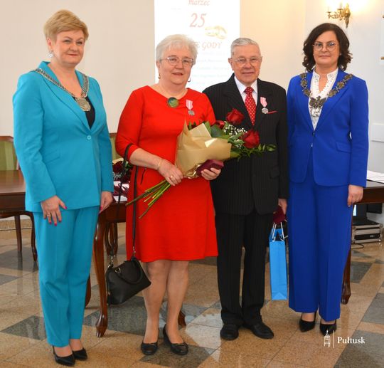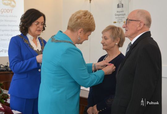 Jubilaci zostali uhonorowani medalami „Za długoletnie pożycie małżeńskie”, nadanymi przez Prezydenta RP. Dekoracji dokonała Burmistrz Miasta Pułtusk Beata Jóźwiak, podkreślając wartość trwałego związku opartego na miłości, zaufaniu i wzajemnym wsparciu. Zaznaczyła, że pół wieku wspólnego życia to nie tylko piękny jubileusz, ale także świadectwo wytrwałości, oddania i siły rodzinnych więzi.