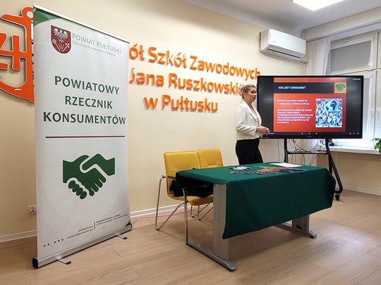 W dniach 16, 18 oraz 27 marca br. uczniowie Zespołu Szkół im. Bolesława Prusa oraz Zespołu Szkół Zawodowych im. Jana Ruszkowskiego w Pułtusku uczestniczyli w prelekcjach prowadzonych przez Powiatowego Rzecznika Konsumentów, Dorotę Ciosek.