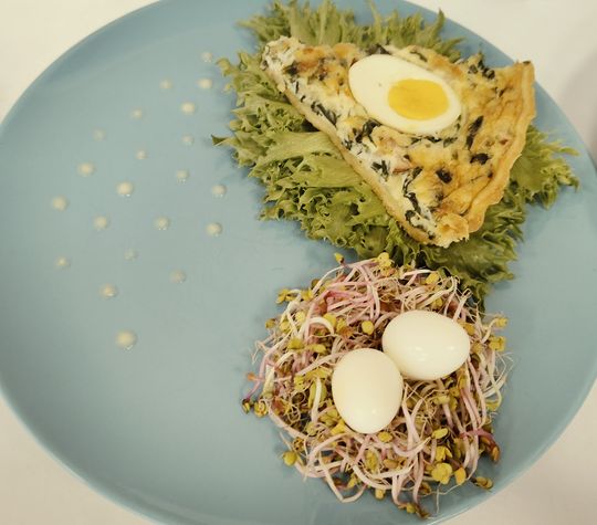 TYGODNIKOWI szczególnie podobała się estetyka dania zaserwowanego przez szkołę w Gzach. Mówi Natalia Turek: -Jajko w zielonej kołderce na serowej poduszeczce – to tarta, w której jest mięsko. Ta druga część to gniazdo z kiełków i w środku są jajeczka przepiórcze. Wszyscy myśleliśmy nad tym daniem. Jakub Piekutowski (rodzynek zespołu): - Zajmowałem się serem i przygotowywałem farsz. Przygotowując się do konkursu, dwa razy wykonaliśmy w szkole tę potrawę pod okiem pani Patrycji Kamińskiej. Nasze danie jest nie czasochłonne i nie kosztochłonne.