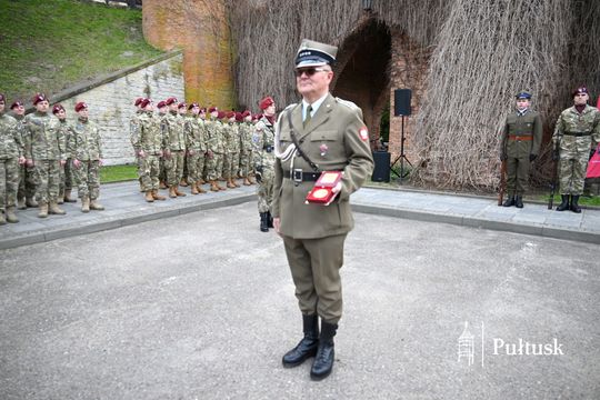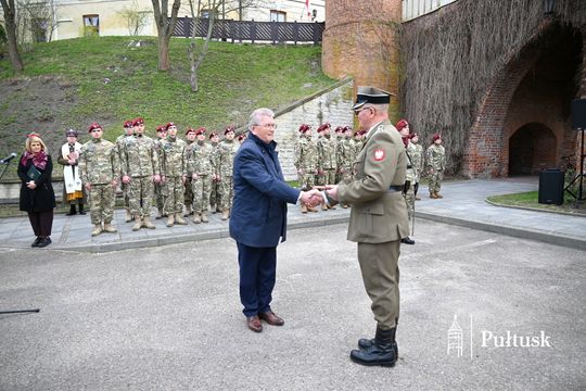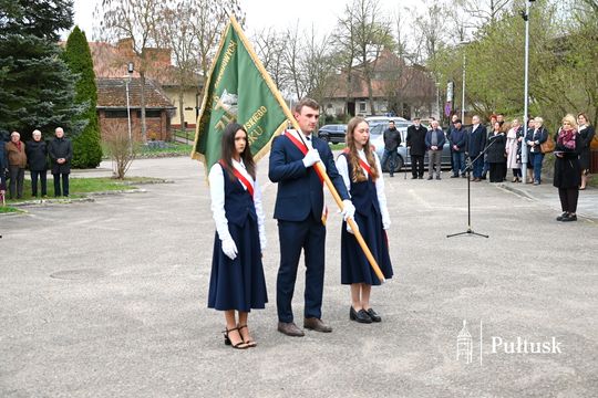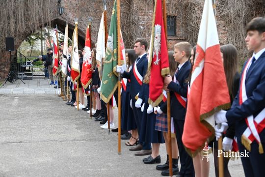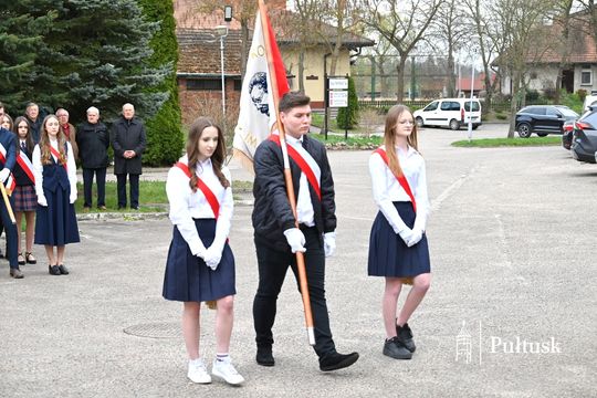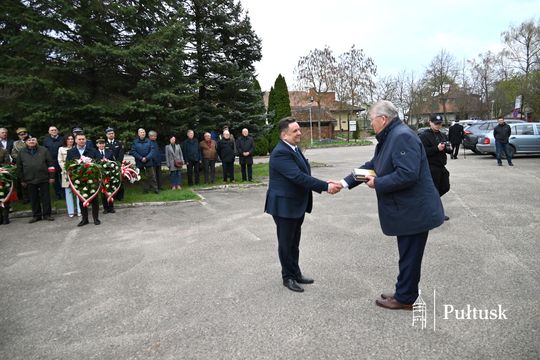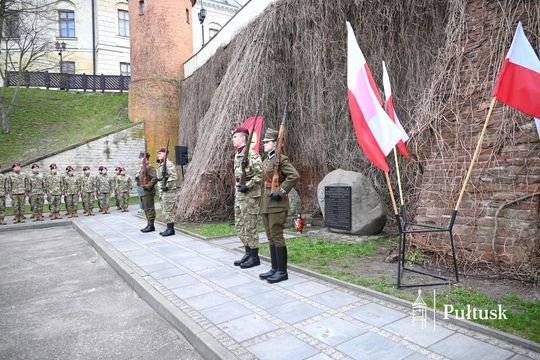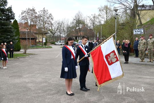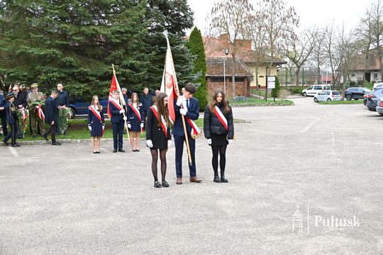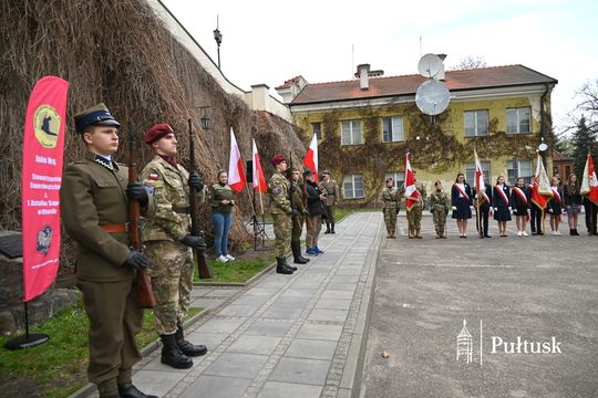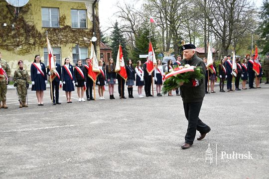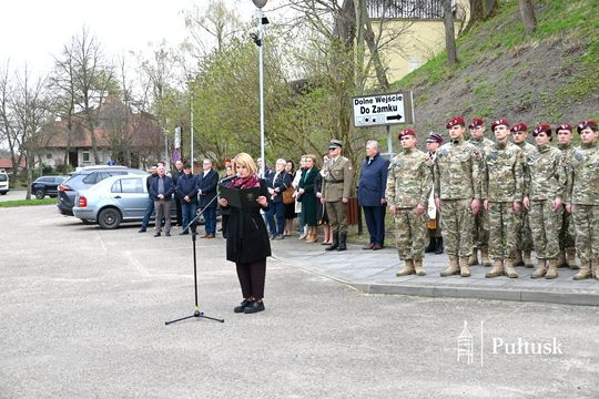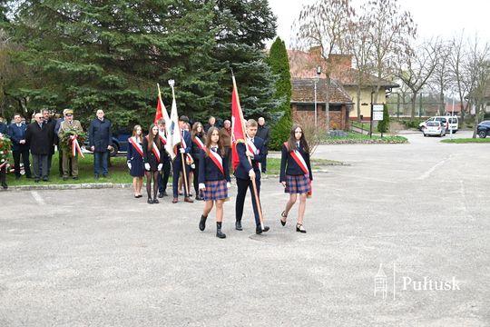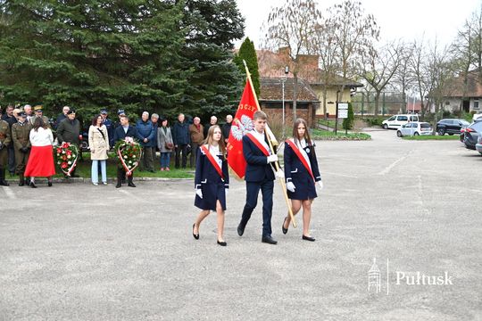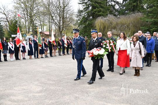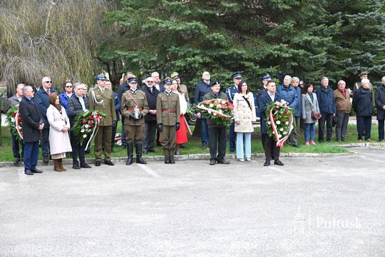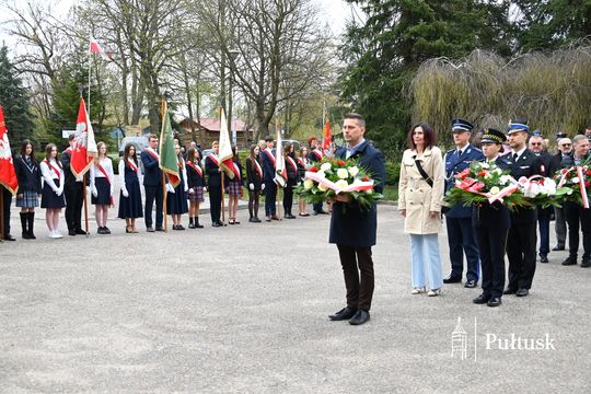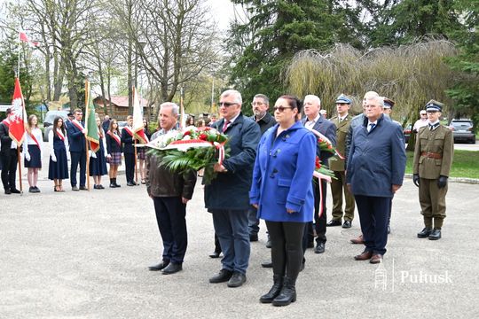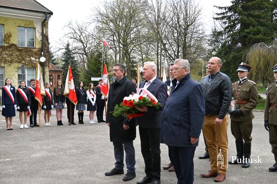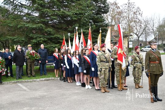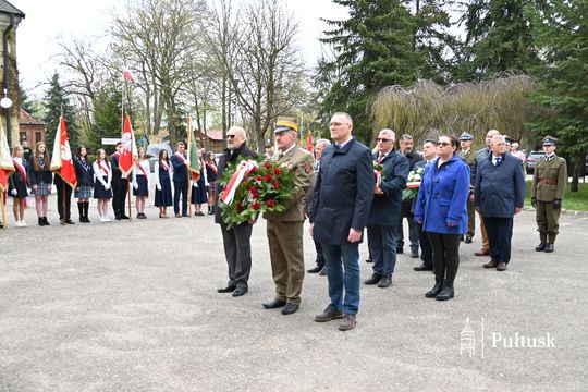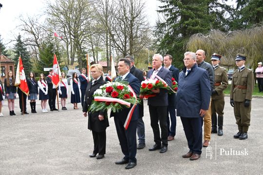 Wiązanki kwiatów przy tablicy upamiętniającej żołnierzy I Batalionu Saperów poległych podczas rozminowania kraju w latach 1945–1948 złożyli Starosta Pułtuski Robert Czyżewski, Drugi Zastępca Burmistrza Miasta Pułtusk Anna Ignatowicz oraz przedstawiciele środowisk kombatanckich, służb mundurowych, stowarzyszeń, instytucji i szkół.