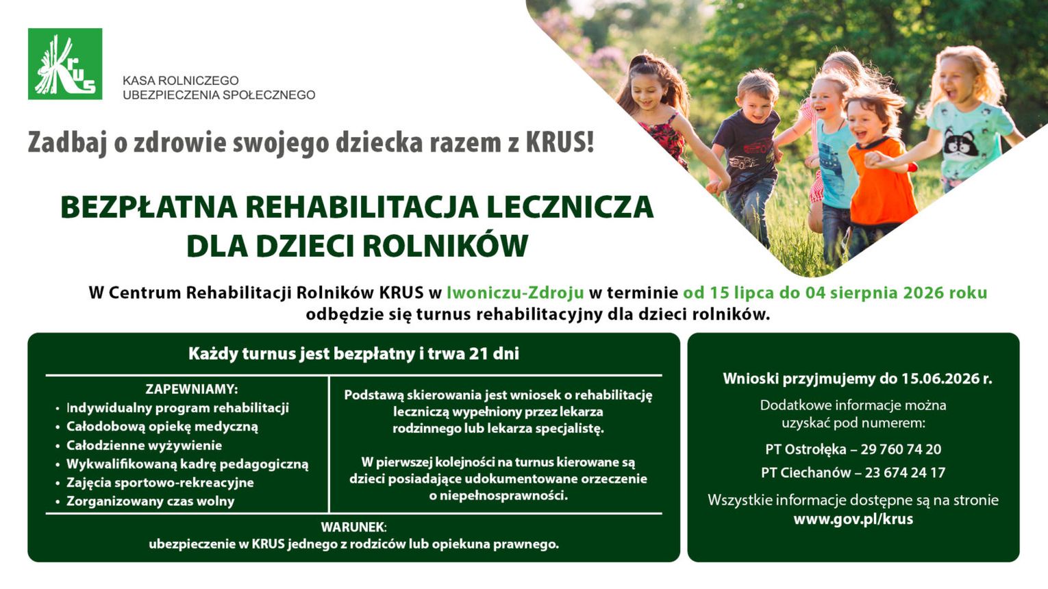 Kasa Rolniczego Ubezpieczenia Społecznego informuje o turnusach rehabilitacyjnych dla dzieci rolników.